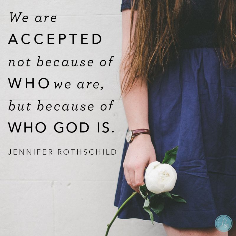 When we feel less than whole, if we can do only one thing, it is to BELIEVE in God’s acceptance of us & His overwhelming, underserved love for us, because God the Father accepted the sacrifice of Jesus to purchase that acceptance for us.